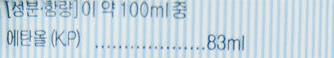뒷부분을 다시 보면 100ml속에 에탄올이 83ml가 들어 있습니다.