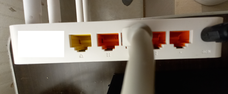 2. 랜선으로 허브로 바꿀 공유기에 인터넷은 연결하지 않고 LAN이라고 적혀있거나 숫자만 적혀 있는 곳과 랜선으로 연결합니다. (사진의 주황색)
