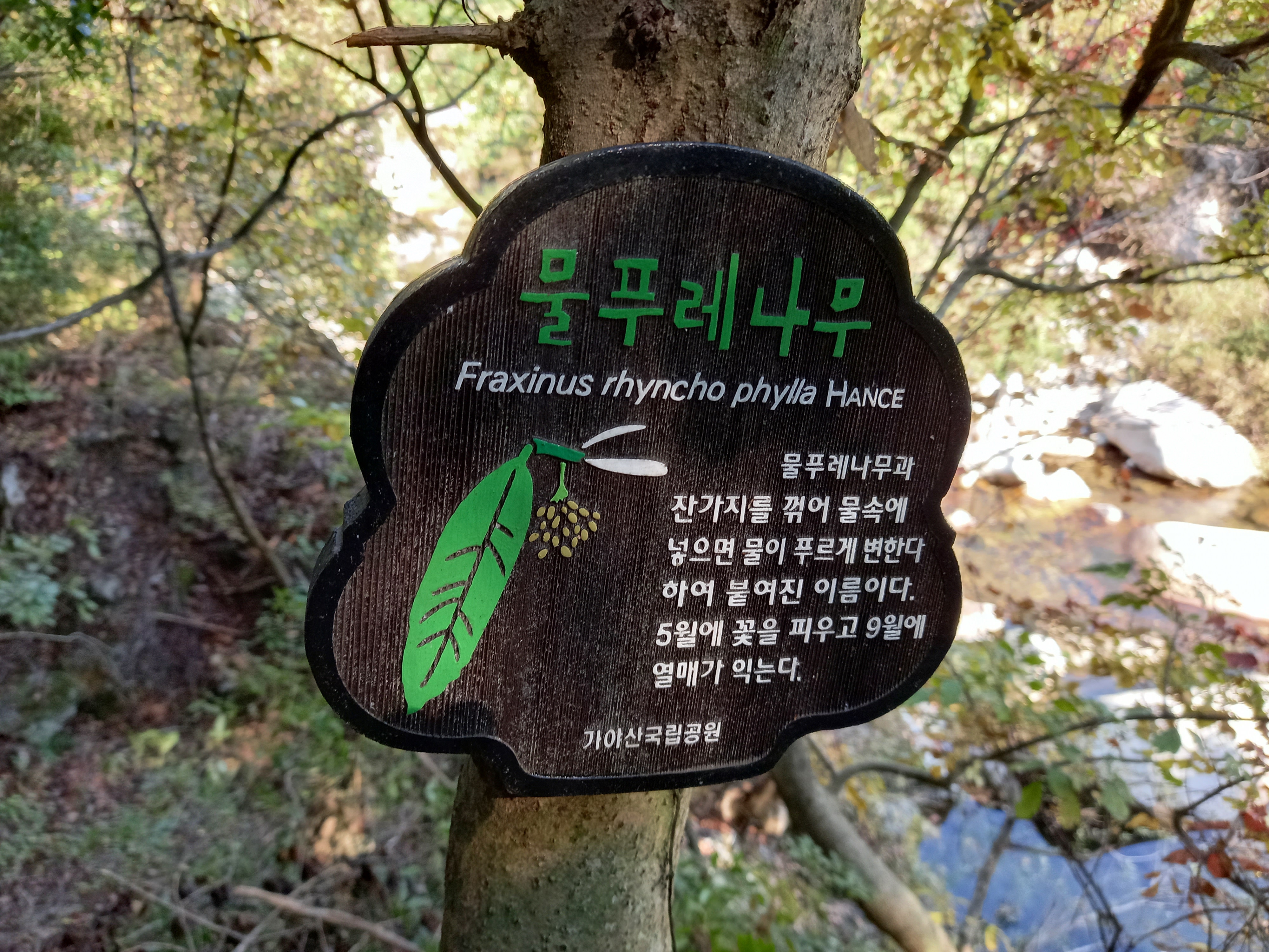 신밑에 깔아 신었다고 "신갈나무", 꺾은 가지를 물에 넣어물 물이 푸르게 변한다고 "물푸레나무" 라고 이름 붙여졌다네요. 걷는데 재미를 더 보태 줍니다.